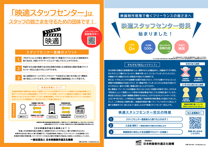 - 労働災害保険団体「映適スタッフセンター労災」の運営